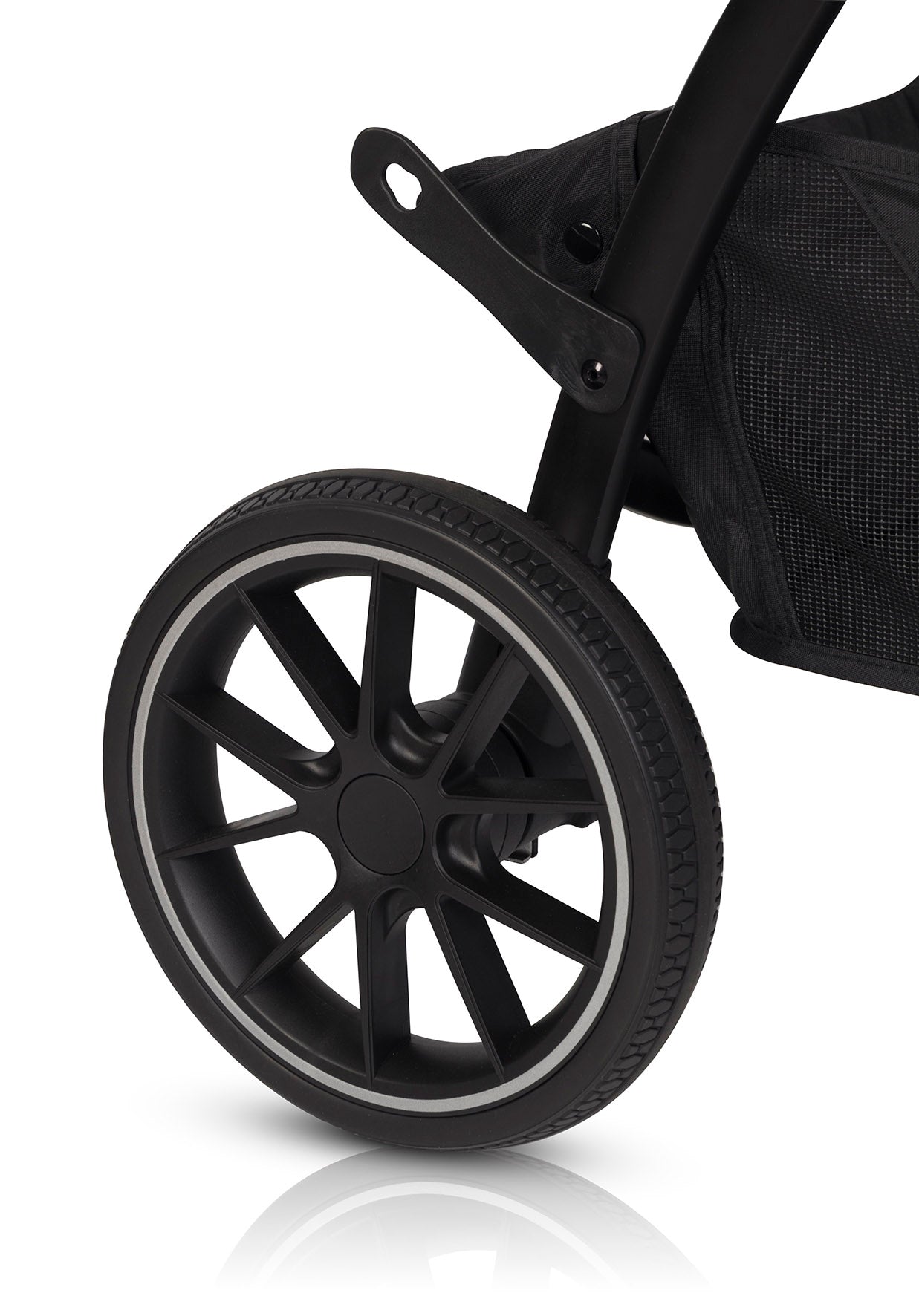 - Ruedas Todo Terreno: Ruedas delanteras giratorias con bloqueo y suspensión para un paseo suave.